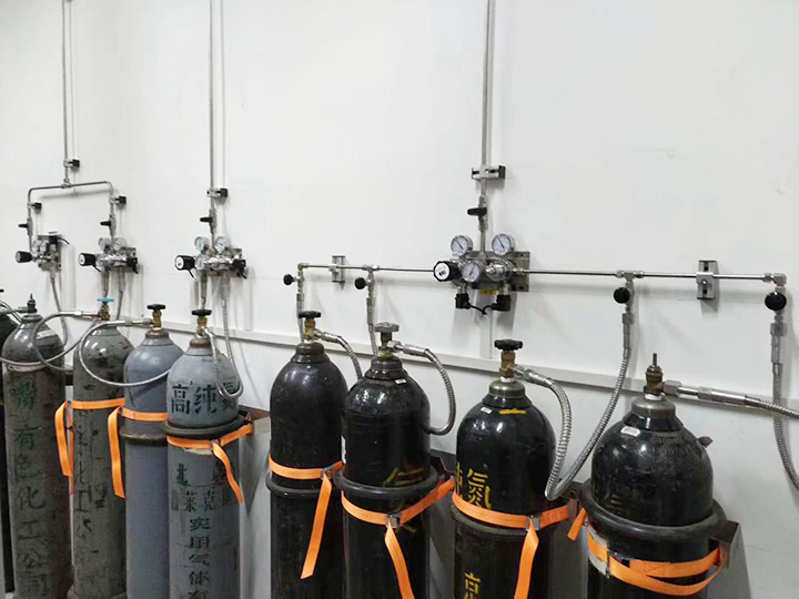 實(shí)驗(yàn)室氣體采用集中供氣方式,由實(shí)驗(yàn)室外專用供氣區(qū)域用管路引進(jìn)。除了潔凈空氣由空氣壓縮系統(tǒng)直接產(chǎn)生外,其余氣體都是采用高壓氣瓶供氣。